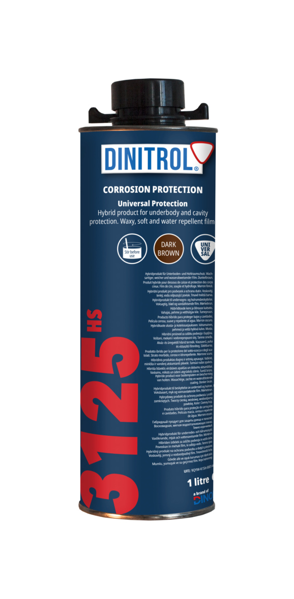 DINITROL 3125 HS to woskowy inhibitor korozji o wysokiej zawartości substancji stałych. Nie pęka i nie łuszczy się, nadaje się do powierzchni wewnętrznych i zewnętrznych pojazdów, ciężarówek i autobusów. Szczególnie przydatny w starszych pojazdach z widoczną korozją podwozia; obszary silnie skorodowane można obrabiać razem z DINITROL ML.
