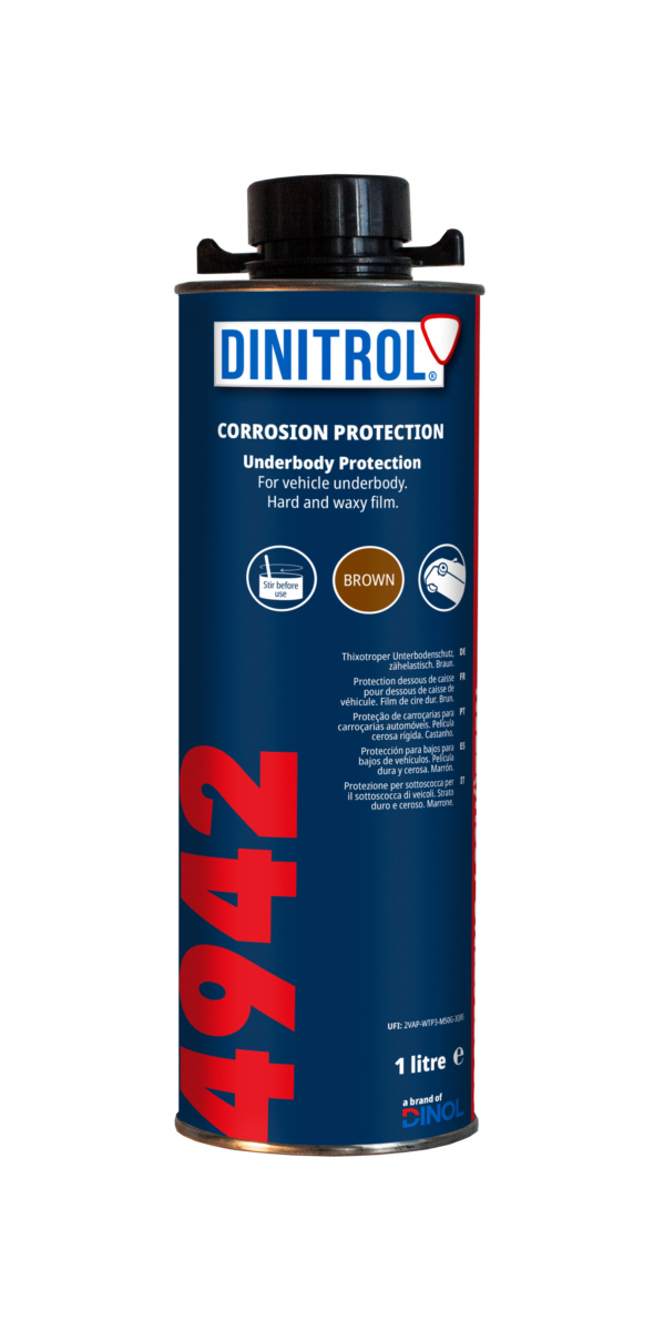 Dinitrol 4942 zapewnia długoterminową ochronę podwozia i może być stosowany także do zabezpieczenia maszyn oraz konstrukcji żelaznych i stalowych w środowiskach o wysokiej korozyjności. Sprawdza się przy produkcji, w zabezpieczeniach na czas importu oraz na rynku napraw.