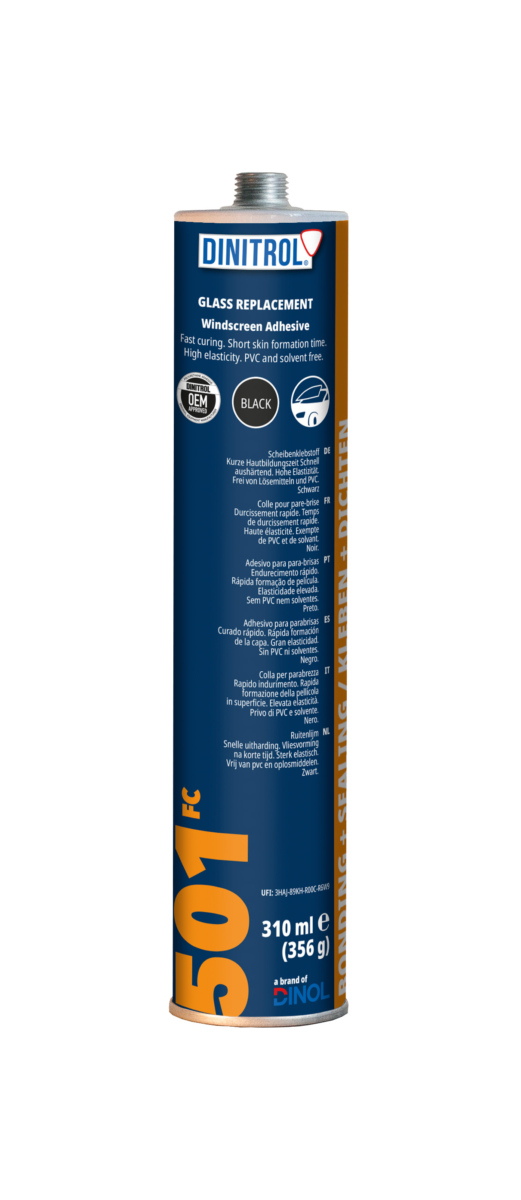 Dinitrol 501 FC jest przeznaczony do bezpośredniego wklejania szyb w pojazdach oraz innych połączeń w budowie pojazdów. Klej charakteryzuje się bardzo dobrymi właściwościami roboczymi, niskim zapachem oraz odpornością na starzenie i warunki atmosferyczne.