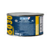 Podłoże należy zmatowić i odtłuścić: powłoki termoplastyczne – zszlifować/odtłuścić; lakiery 2K – zmatowić i usunąć kurz/tłuszcz; stal ocynkowana – oczyścić rozcieńczalnikiem; aluminium – delikatnie zmatowić i wykonać próbę adhezji. Drobne wyrównania można wykończyć szpachlami wykańczającymi (np. DINITROL 6052 / 6060) oraz odpowiednimi podkładami i fillerami. Dzięki wysokiej zawartości aluminium produkt wspiera ochronę antykorozyjną naprawianych miejsc, a szlifowanie na sucho przebiega szybciej, ponieważ pył opada łatwiej niż w typowych szpachlach.