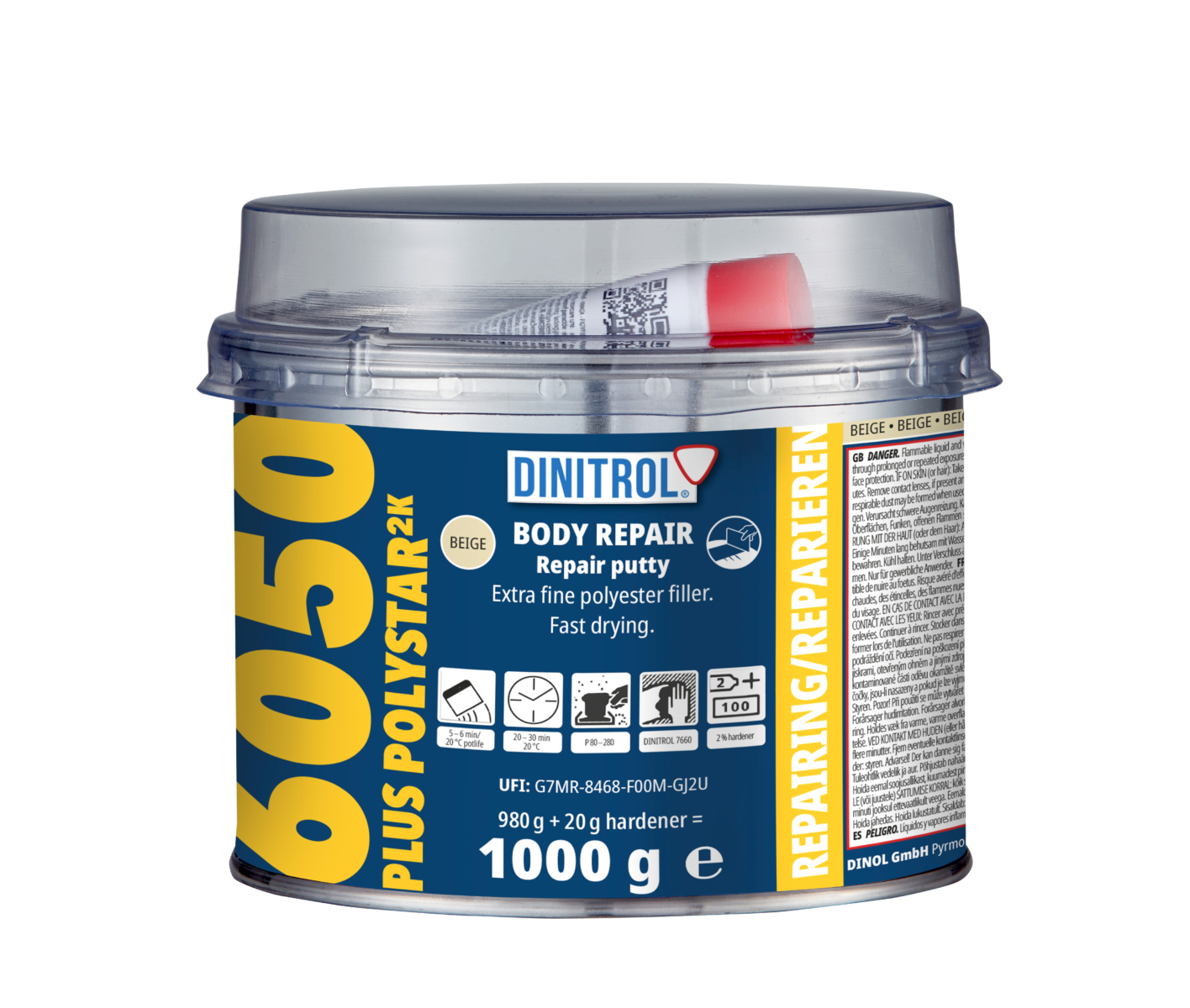 DINITROL 6050 Plus Polystar 2K to uniwersalny wypełniacz naprawczy do zastosowań karoseryjnych i przemysłowych. Produkt dobrze trzyma się standardowych blach stalowych, blach ocynkowanych (elektro-, ogniowo-, sendzimerskich), powierzchni zagruntowanych i zaszpachlowanych, zdrowych powłok 2-komponentowych (zmatowionych), elementów z tworzyw wzmacnianych włóknem szklanym (GFRP) oraz twardego poliuretanu.