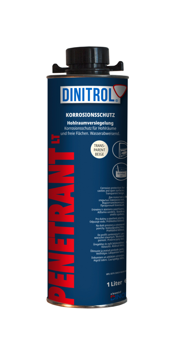 DINITROL PENETRANT LT to woskowo‑żywiczna powłoka do aplikacji w profilach zamkniętych oraz na otwartych powierzchniach pojazdów. Sprawdza się w drzwiach, słupkach, szczelinach i elementach konstrukcyjnych, a także przy ochronie części zamiennych magazynowanych długotrwale lub transportowanych w trudnych warunkach korozyjnych.