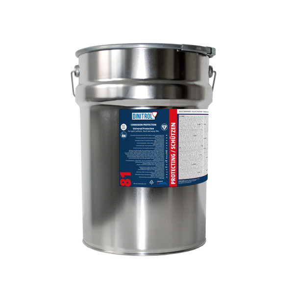 DINITROL 81 po odparowaniu rozpuszczalnika tworzy przezroczystą, twardą, woskową powłokę nieklejącą się, która pozwala na łatwą kontrolę powierzchni metalowych, odczytywanie etykiet i numerów. Przeznaczony do ochrony stali i innych metali podczas przechowywania i transportu; może być stosowany także na powierzchniach lakierowanych.